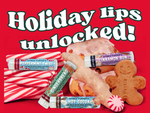 Cozy on up with our seasonal festive lippie flavors. Each balm brings a little holiday magic to your lips - joyful, nostalgic, and oh-so-giftable. Perfect for stockings or treating yourself to some cheery, clean self care.